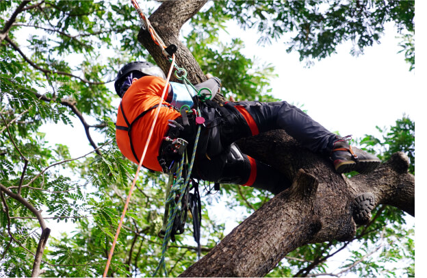 弊社はツリークライミングと高度なロープワークを活用し、安全管理を徹底したうえで高木伐採・高木剪定・特殊伐採を迅速かつ確実に行います。経験豊富なスタッフが現場ごとに最適な施工方法を提案いたします。