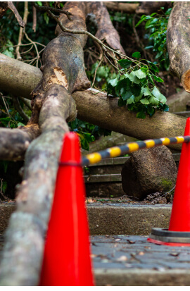 枝葉や幹が伸び過ぎた木は、台風や強風時に折損・倒木する危険性が高まり、けがや建物への損壊といった重大な被害を引き起こす可能性があります。早めの対策が重要です。