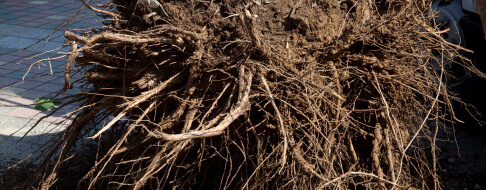 植え替えや将来的な手入れ不要にしたい場合は、周囲の植栽を傷めない方法で根からの除去作業を行います。