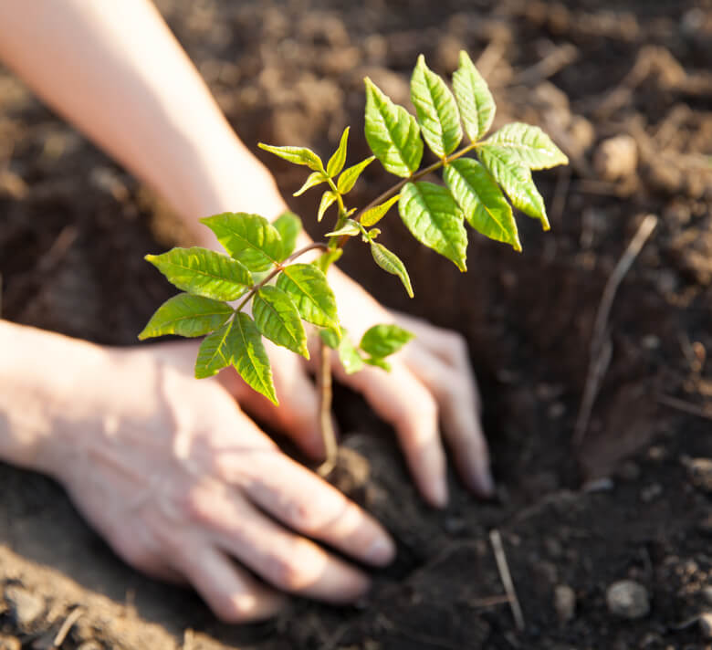 伐採後の山林に苗木を植えて森林を再生する取り組みです。放置すると土砂災害や山崩れの危険が増し、水源涵養機能の低下にもつながるため、早期の植林が重要です。