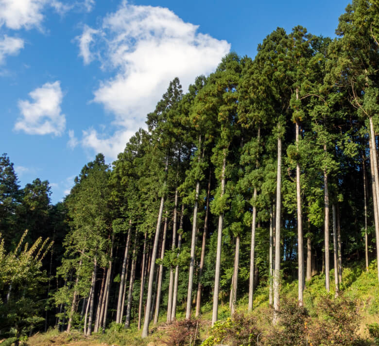 植林後から伐採に至るまでに行う育成作業で、苗木の健全な成長を促します。下草の除去や間伐・枝打ちを行うことで立木の品質向上と健全な林分形成を図ります。